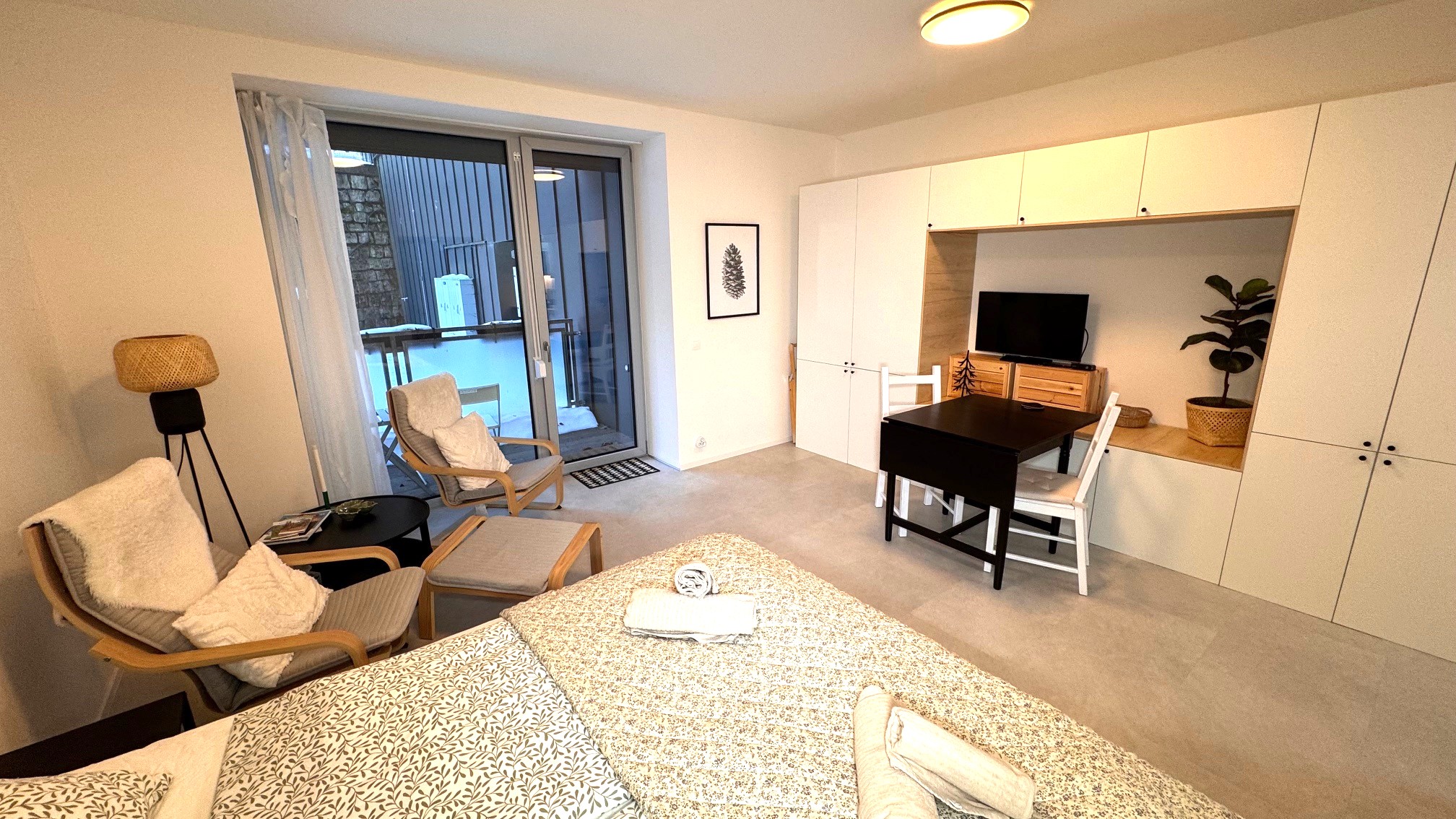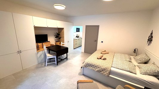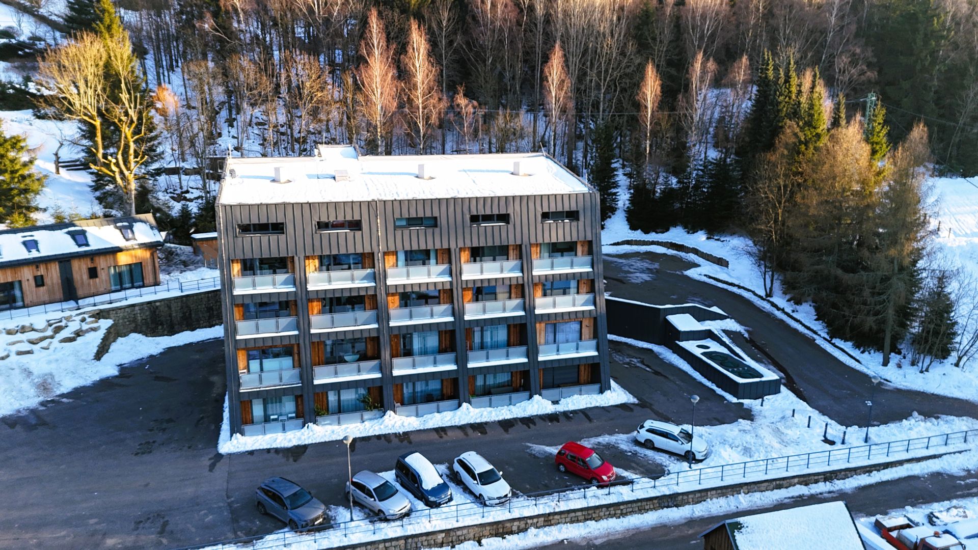 Prodej moderního apartmánu 1+kk s balkónem 30,7 m2 v Janově nad Nisou – Jizerské hory.