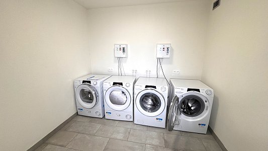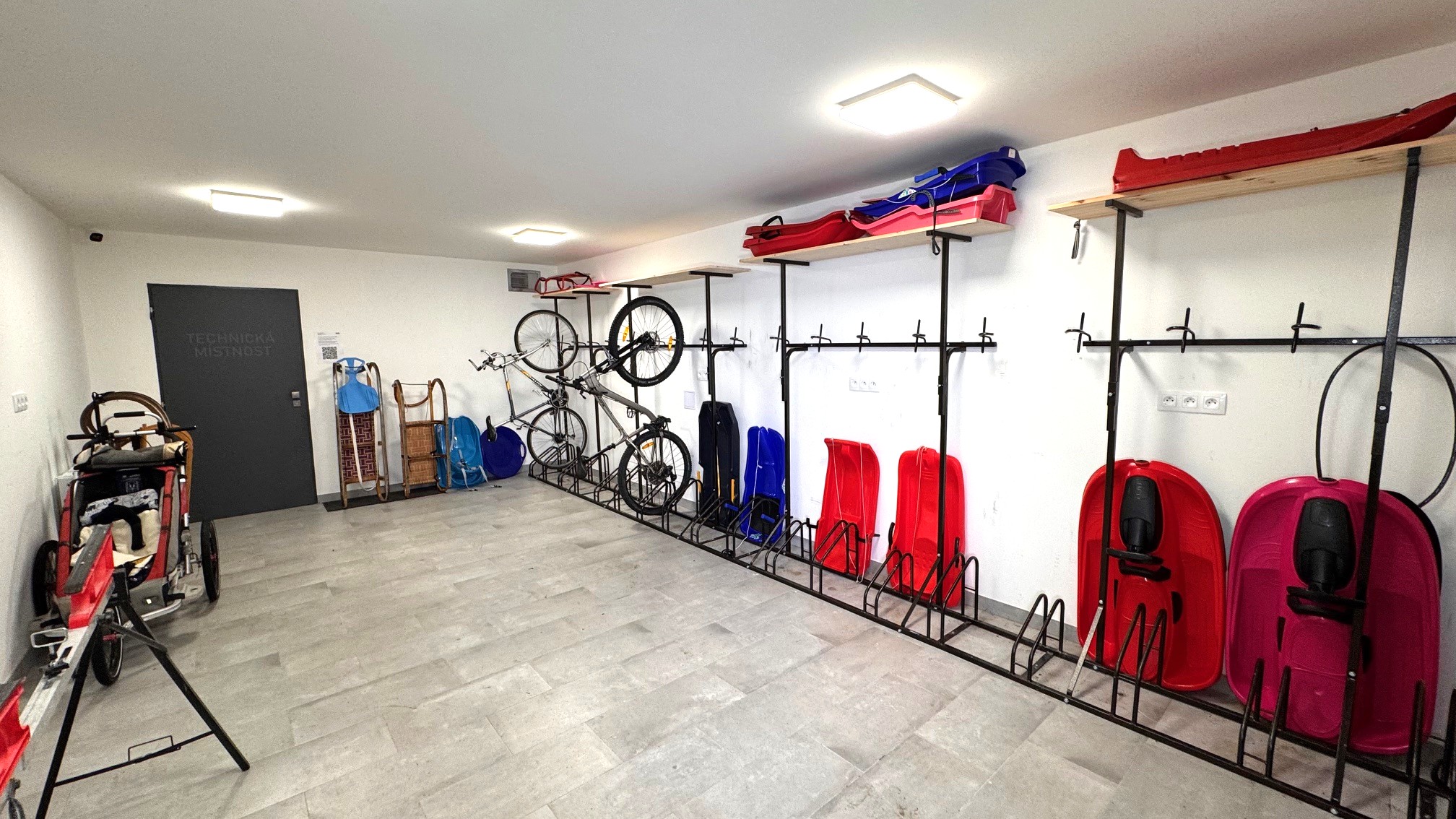 Uzamykatelná kolárna a lyžárna (vlastní box na lyže), soukromé parkoviště. V budově možnost využít pračku a susičku - na mince.
