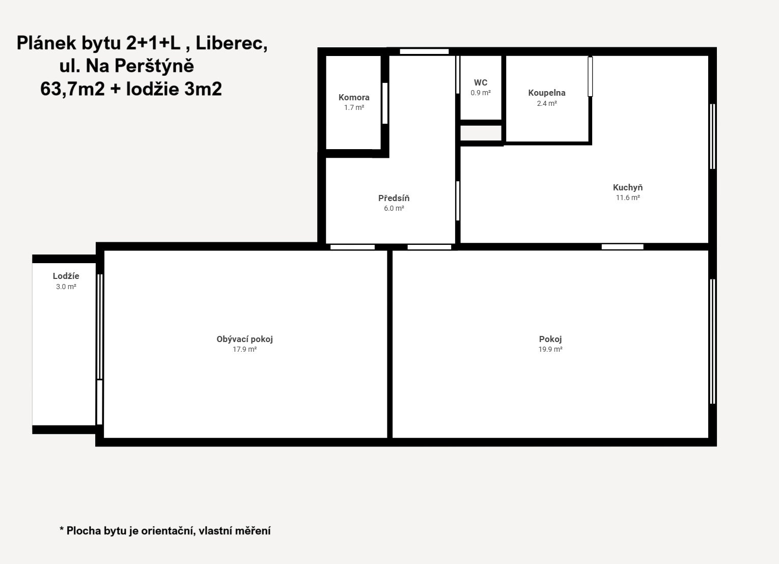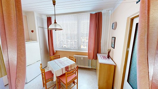 Tento prostorný byt o výměře 63,7 m2, doplněný o lodžii o velikosti 3,0 m2, se nachází ve třetím patře zatepleného panelového domu.