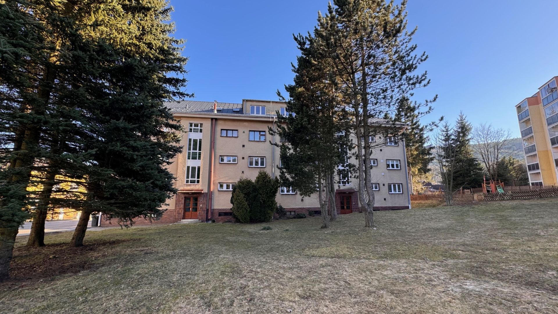 Nabízíme k prodeji velice pěkný a slunný byt o dispozici 2+1, situovaný v 1. nadzemním podlaží cihlového bytového domu bez výtahu. Tato nemovitost se nachází v klidné části malebného města Tanvald, konkrétně v ulici Radniční, a nabízí celkovou užitnou plochu 76,5 m². Byt je v osobním vlastnictví.