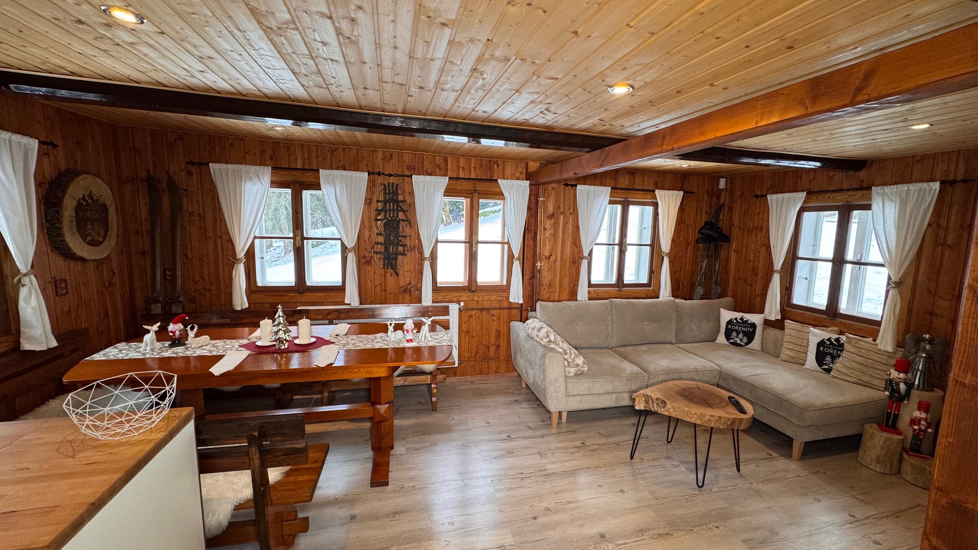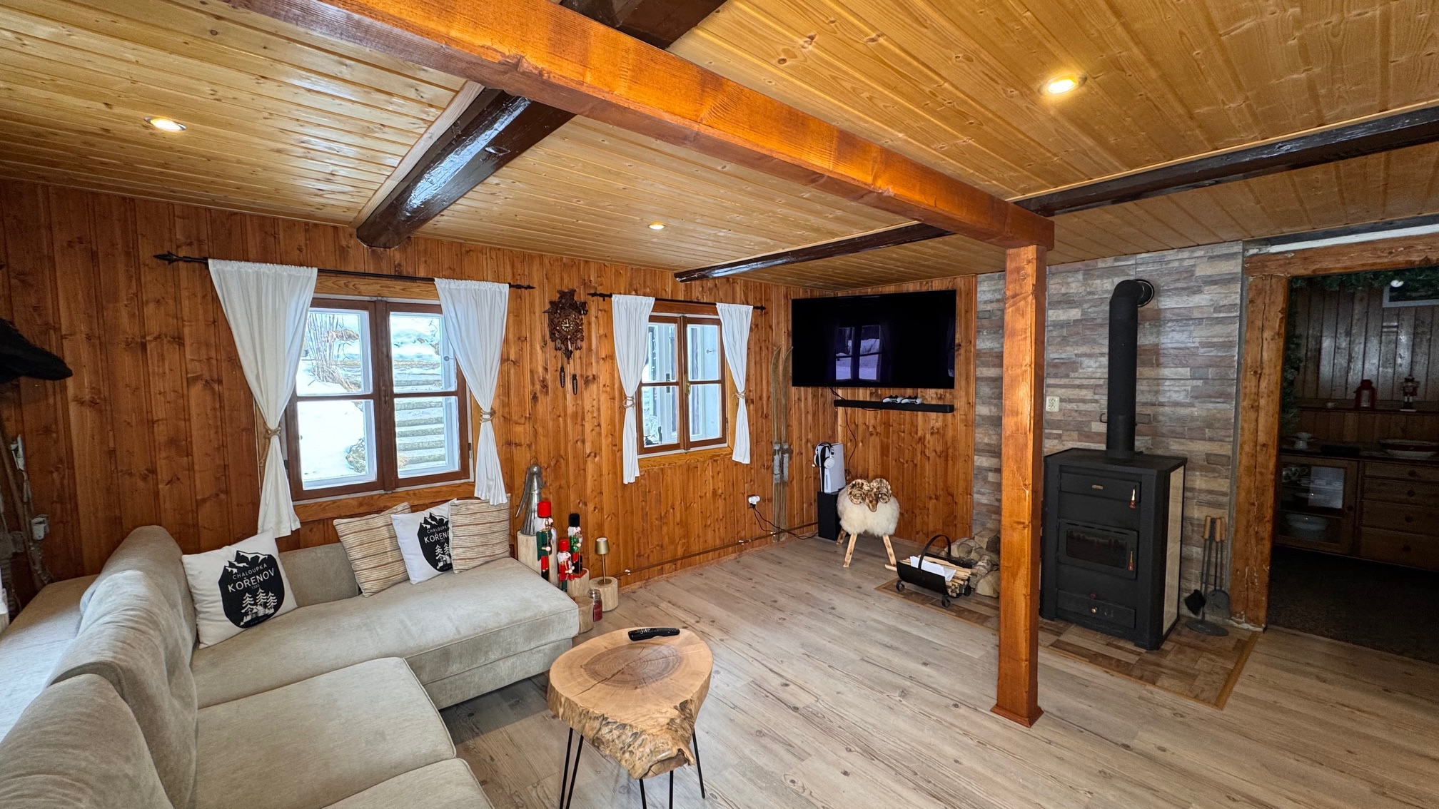 Chalupa je po rekonstrukci interiéru se stylovou kuchyní a nábytkem, což z ní činí ideální místo pro rodinnou rekreaci nebo celoroční bydlení.