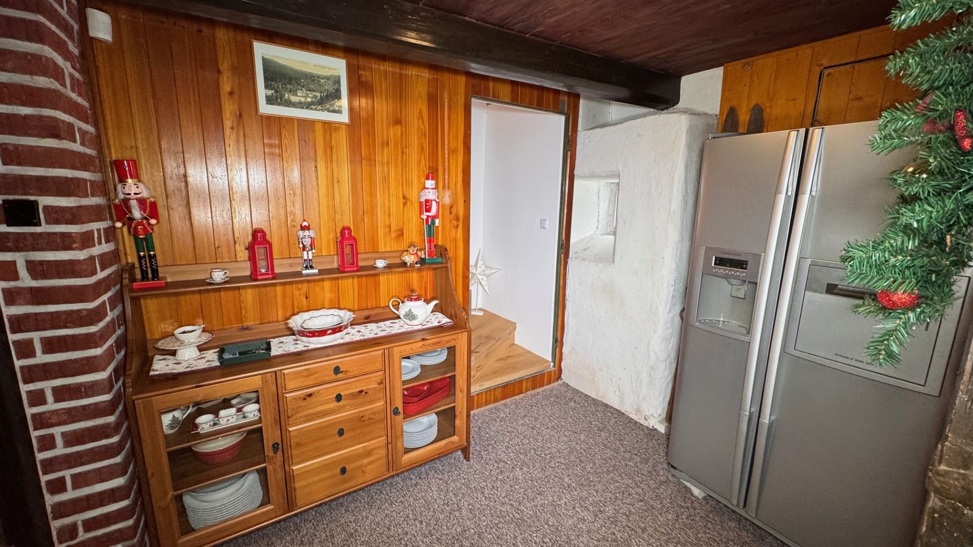 V suterénu je klenutý sklípek s vodárnou, který dodává chalupě kouzlo a možnost využití pro uskladnění vína nebo jiných pokladů.