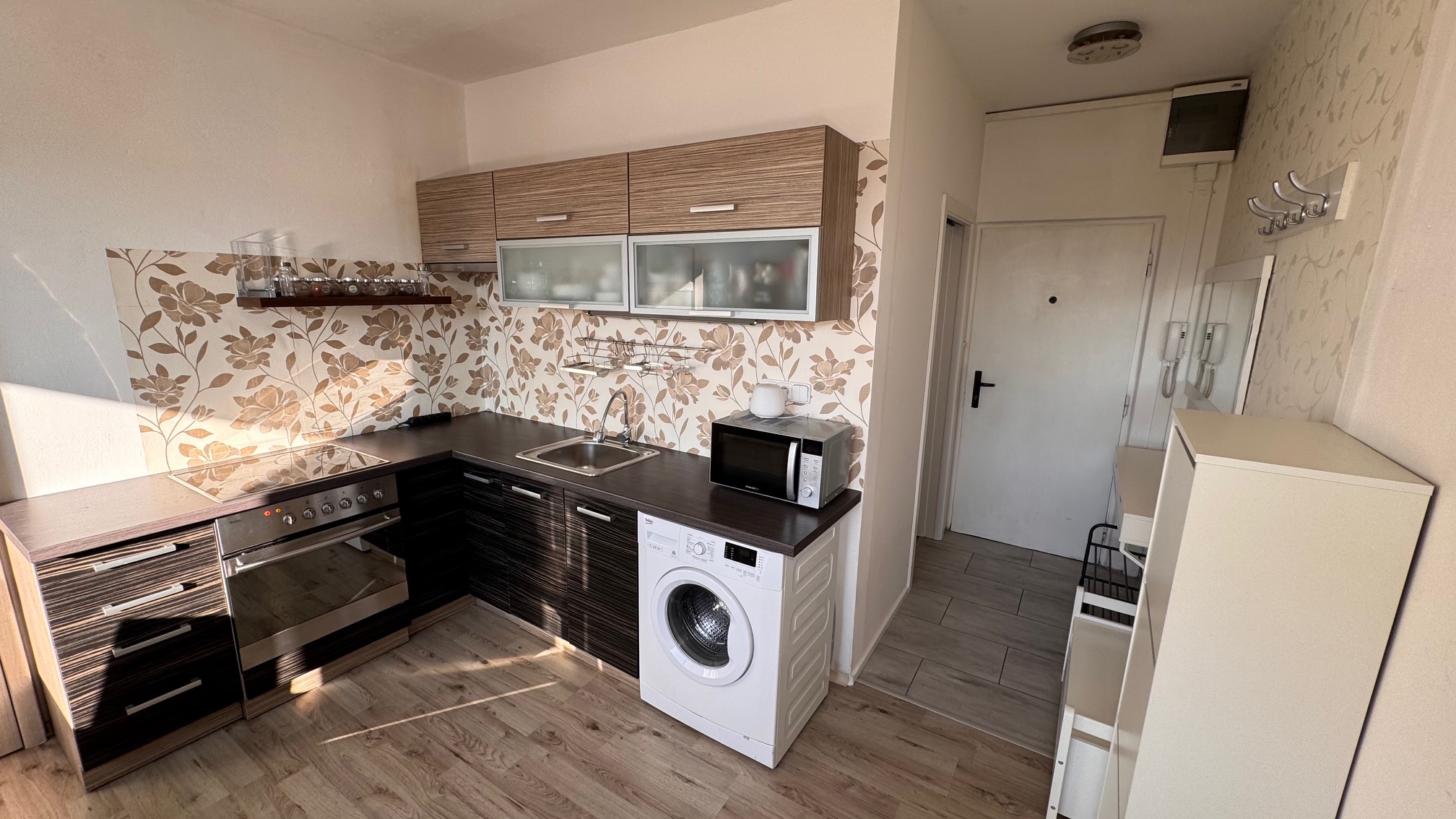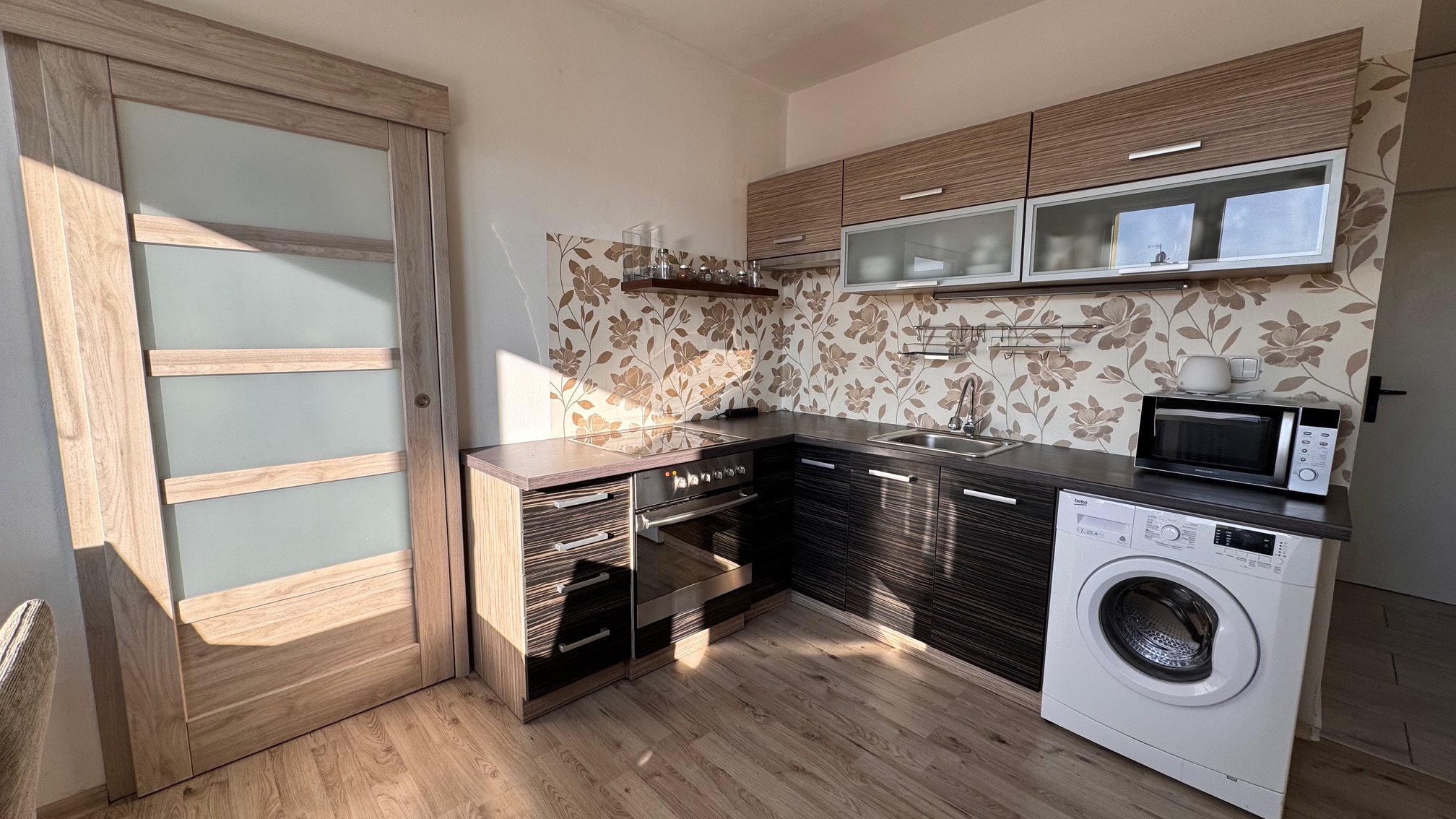 Dosah všech služeb, MŠ, ZŠ, MHD, vlakové, tramvajové spojení a centrum města cca 10 min. pěšky. Parkování před domem.