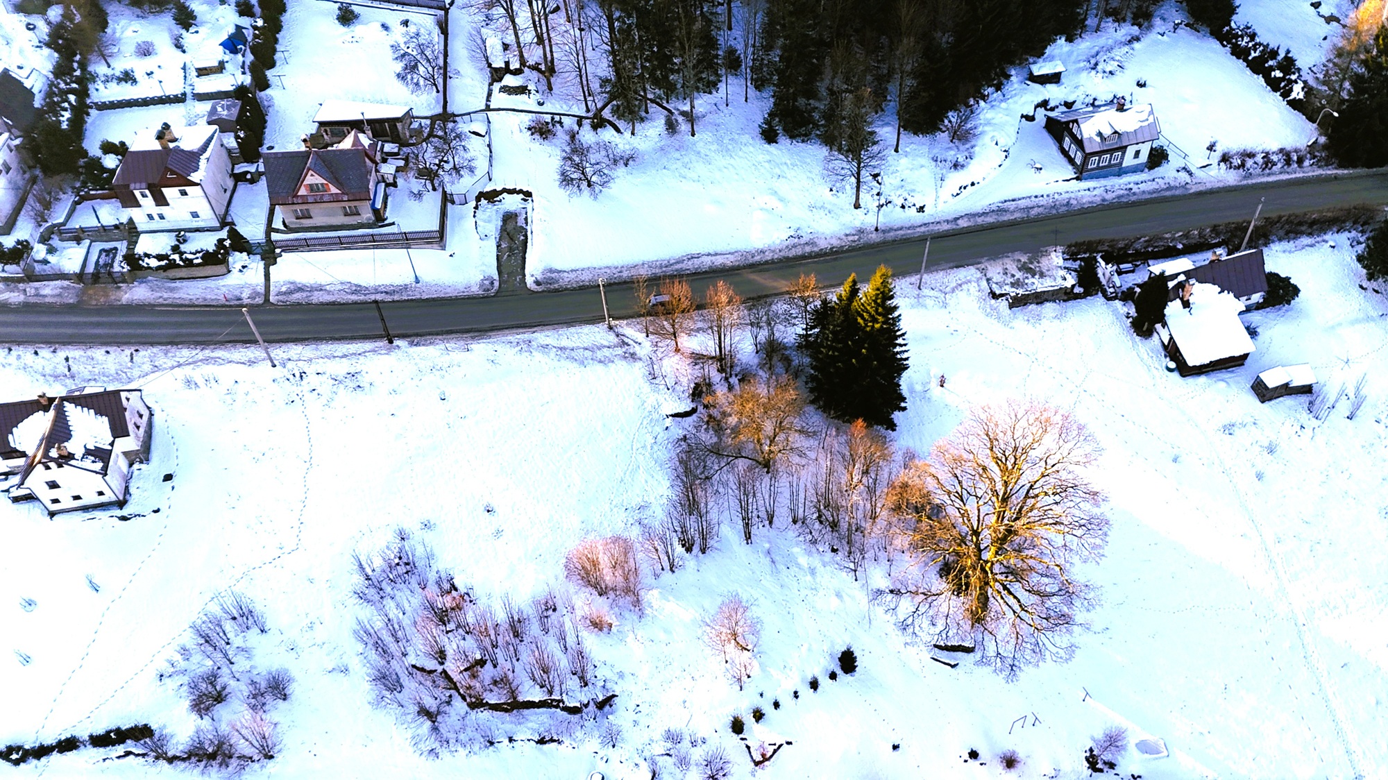 Přístup k pozemku je zajištěn z místní komunikace, což garantuje snadnou dostupnost po celý rok.
